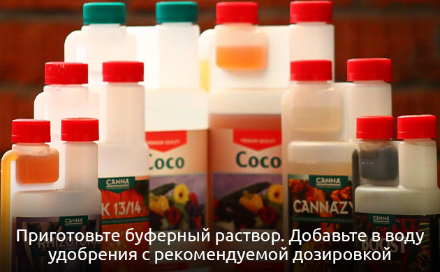 6. Приготовьте буферный раствор. Для этого добавьте в воду удобрения, исходя из дозировки, рекомендуемой производителем для вегетативной стадии развития;