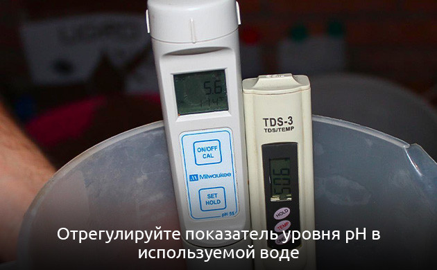 5. Отрегулируйте показатель уровня pH в используемой воде в соответствии с рекомендациями производителя удобрений;