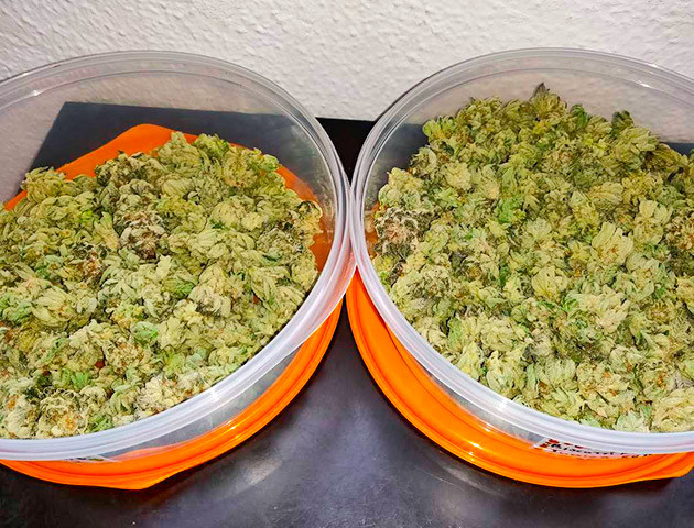 Я нисколько не разочаровался продуктом отечественного производителя. Biscotti Mintz от «Семяныча» рос, как настоящий чемпион, и превратился в итоге в кустистую заснеженную бомбу. В сухом виде у меня на руках осталось 182 грамма соцветий и еще целый контейнер листьев. Я собрал не только прилегающие к соцветиям «сахарные» листочки, но и все остальные листья, на которых было очень много трихом. Я могу с уверенностью сказать, что даже они по качеству намного сильнее многих других сортов от американских или европейских производителей.