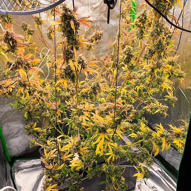 После завершения тренировок я дал растению еще неделю, чтобы побеги чуть вытянулись и подготовились к цветению, а затем по окончании 8 недель веги переместил растение в соседнюю палатку, в помещение для фазы цветения.