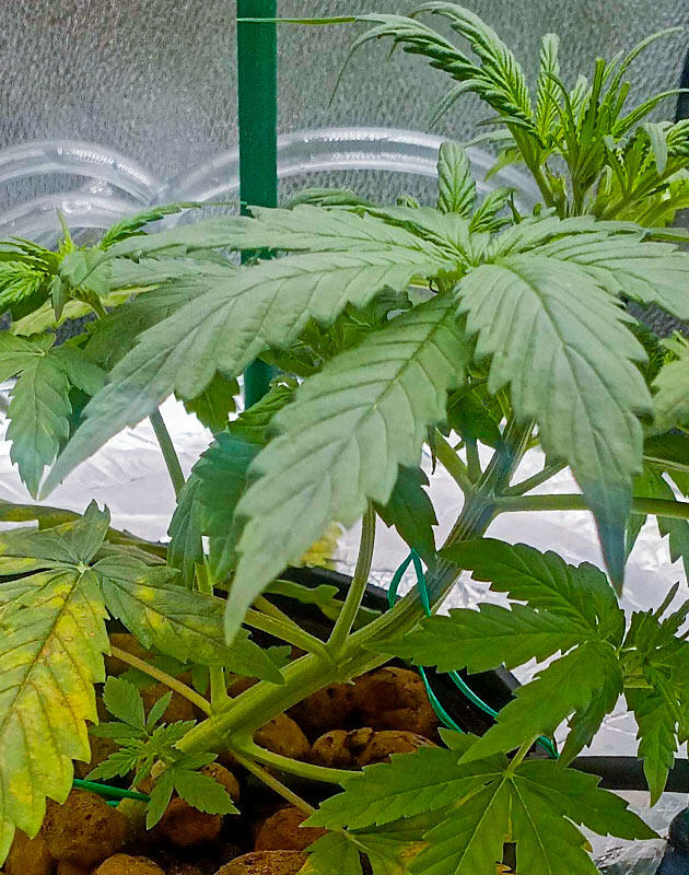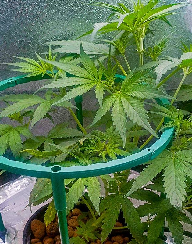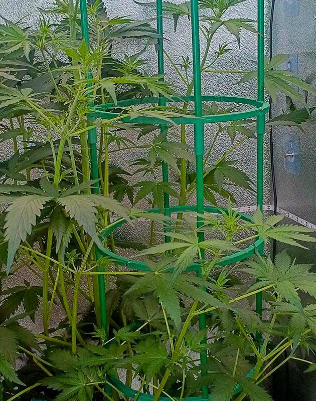Со следующей недели будет только вода с «Рипеном» 10 дней, потом промывка только водой, пара дней темноты перед харвестом. Пока еще шишки набирают вес. Некоторые ветки стали гнуться под собственной тяжестью, и мне пришлось их подвязывать. Нижние мелкие соцветия продолжаю удалять, чтобы растихи сконцентрировались на самых перспективных направлениях.