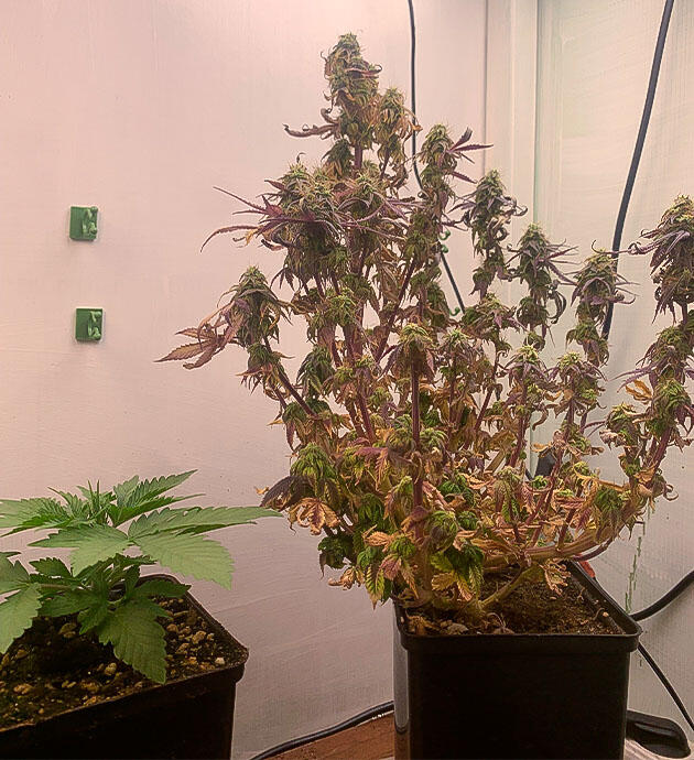 Ребята, сейчас начнется что-то нехорошее с растением. Оно неплохо растет, как видно на примере зеленой массы растения. На 2,5 литра «субстрата» оно выглядит, как мои предыдущие кусты на 7 - 10 литрах. Но я вообще не понимаю, как поливать так, чтобы оно не стрессовало.