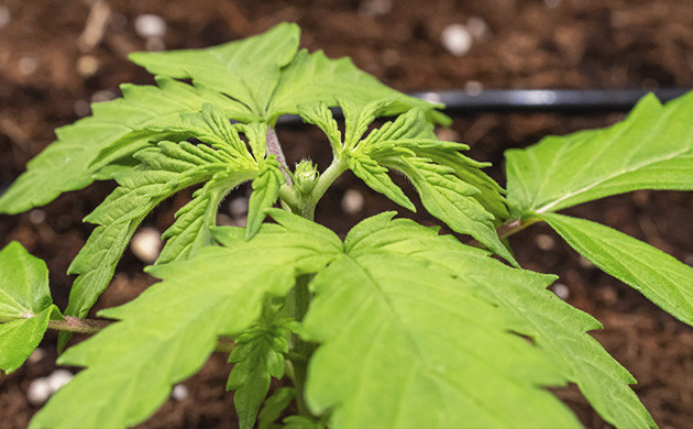 Для начала использовал литровый горшок. Гров будет проходить в кокосе + перлит + гумус + гуано + микориза (80/5/5/5/5). Саженец сбросил каску в день высадки, а значит, можно начинать вести отсчет грова.