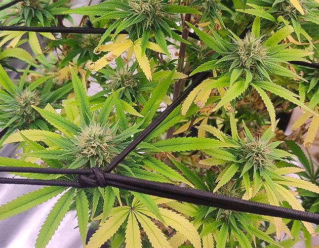 В начале девятой недели куст переехал в другой гроубокс для цветения площадью побольше и с мощным светом SpiderFarmer SE5000 на 480 W, полный спектр, все дела. Также в палатке установлена сетка скрог с крупными ячейками. В начале недели хорошо покормил растиху, налил 3 литра компота: