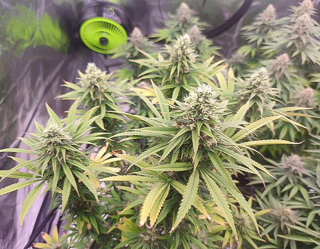 Гровлю в боксе метр на метр, высота 2 метра, по факту 180 см, с учетом освещения и того меньше. Лампы у меня SpiderFarmer, модели SF2000 и SE5000. Первую использую на веге, вторую включаю на цвет. Обычно поднимаю по 3-4 куста за раз. Места хватает, если нормально за ними следить. В углах бокса стоят вентиляторы для обдува, установлена хорошая вытяжка + угольный фильтр.