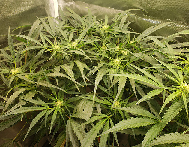 На седьмой неделе добавил в “компот” Liquid KoolBloom. Таким образом, довёл ppm до 825. Растения выглядят отлично, пьют по три литра в сутки, обрастают шишками и радуют меня своим роскошным видом. Запах уже сейчас начинает пробиваться из палатки, каждый раз соблазняя заглянуть внутрь. В конце недели сделал дефолиацию, обрезал немного листвы с каждого куста.