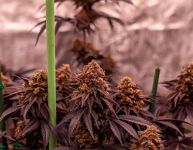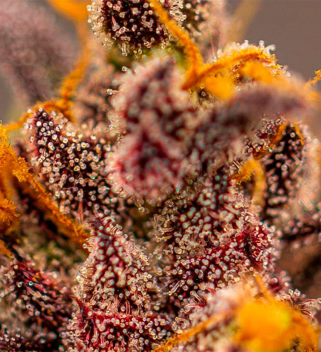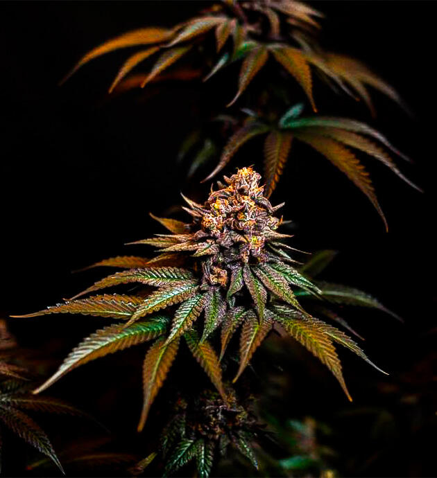 Каннабис с выраженными темными оттенками и плотными соцветиями