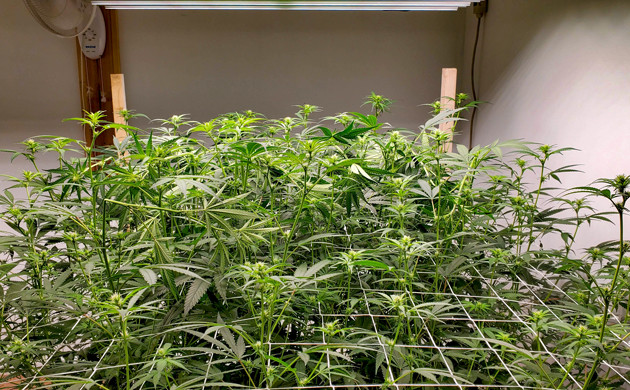 Наконец, я рассадил коноплю. Оставил 7 самых крепких кустов: один в середине и по три с двух сторон. Пришлось выполнить суперкроппинг, чтобы сформировать приличную крону. Также выполнил лолипоппинг и дефолиацию, но я знаю, что придется еще убирать часть листьев во внутренней части кустов.