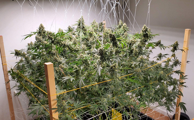 На 14-й неделе уже практически все ветви на подвязках. Дело близится к концу. Почти все трихомы конопли белые и много янтарных. Подожду конца недели и буду обрезать своих девочек.