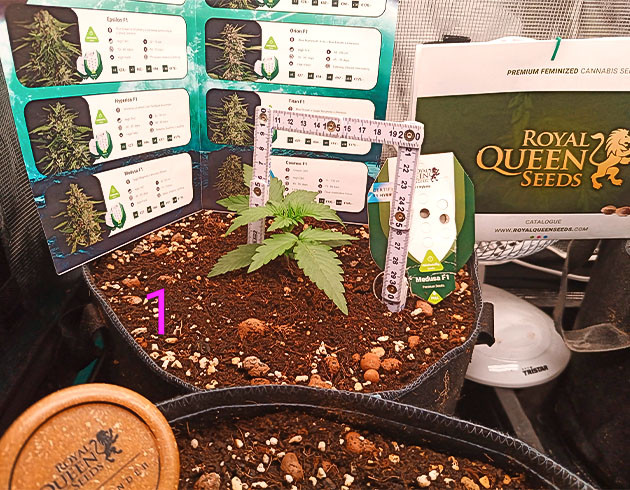На первой неделе семена были замочены и после появления корешков пересажены в торфяные горшки объёмом 1,5 литра. Субстрат был приготовлен из смеси кокоса и перлита для обеспечения хорошей аэрации. Освещение было установлено на 18/6 для стимуляции роста. В этот период растения активно начали развиваться.