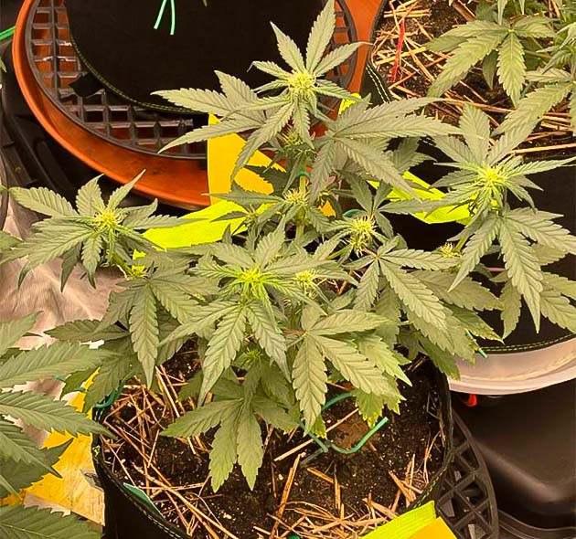 У другого, более крупного куста Mint Jelly Auto, к сожалению, мне пришлось удалить несколько недоразвитых бутонов. Дело в том, что они оказались не женскими, а мужскими. Скорее всего, это также было связано с полученным стрессом. Точнее, я молюсь, чтобы это было просто случайное явление от стресса и подобная «акция» не повторилась. К счастью, «бананы» были пустыми и еще не успели сформировать пыльцу. Впредь буду внимательнее следить за этими дамами.