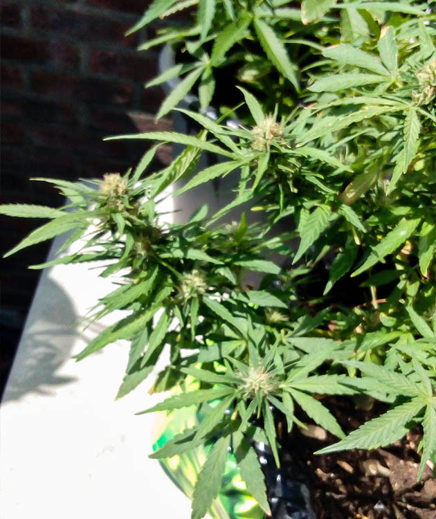 Девочка NYC Diesel Auto меня очень приятно удивила. Она выросла практически без моего участия, в огородной почве. Всё, что мне пришлось сделать, – это немного подкормить её из-за дефицита азота и пару раз полить в те недели, когда не было дождей. За счет большого размера куста сформировалось много шишек, но из-за не очень хорошей погоды они были маленькие. Несмотря на свой скромный размер, соцветия были смолистые и приятно пахли фруктами. Пришлось повозиться с маникюром куста для просушки, так как листвы было очень много. В конечном итоге я получил 50 грамм небольших шишек всего за 8 недель, приложив для этого минимум усилий. Это самый простой гров из всех, что мне приходилось проводить.