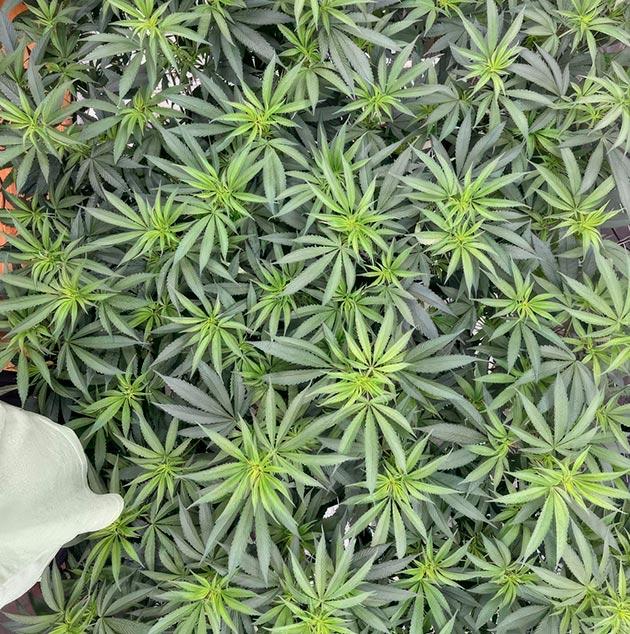 Кусты каннабиса с развивающимися бутонами и трихомами