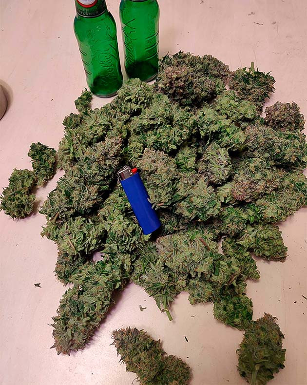 Обрезал кусты очень долго. Они были липкие и маслянистые, а сами шишки массивные и плотные. Возился с кустами часов 6, не меньше. В конечном итоге получил почти килограмм мокрых шишек без учета стеблей и большей части листвы. Сушил, разложив на картонке в том же помещении при температуре 16-18 °C на протяжении недели. Вес высушенных шишек – 250 грамм.