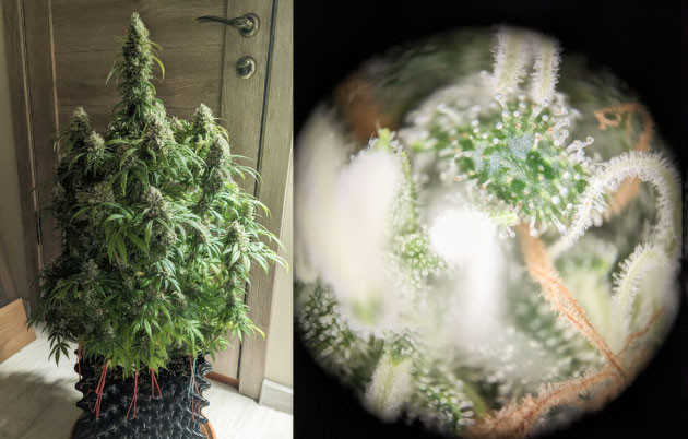 На 69-й день жизни растихи увеличил объем полива до четырех литров. Пропорция для компота – 75 % от дозировки компонентов для цветения Biobizz . Размер куста не меняется. Постепенно начали появляться полноценные соцветия, что меня сильно обрадовало. В воздухе начал витать приятный аромат, пока больше похожий на обычную коноплю. Продолжил полив этим же раствором.