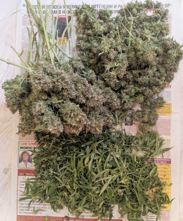 Также получилось небольшое количество листвы с трихомами, сухой вес не замерял.