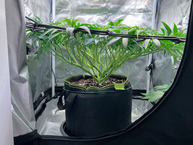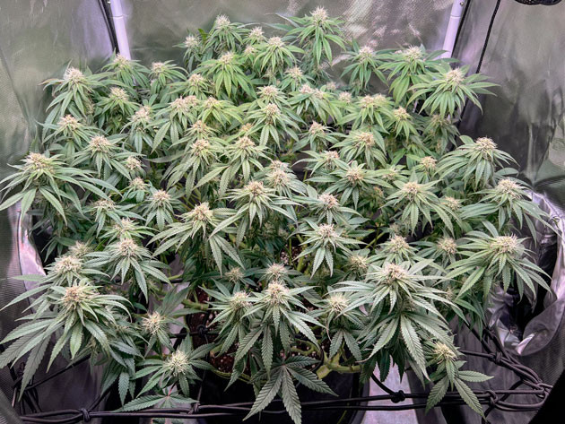 Эти три недели проходили стабильно. На четвертой я воспользовался LST-подгибом. На 31-й день я начал замечать, что один из кустов оказался недоразвитым. Скорее всего, я подверг его излишнему стрессу, сделав что-то не так. Было принято решение продолжать выращивать лишь одну оставшуюся растишку.