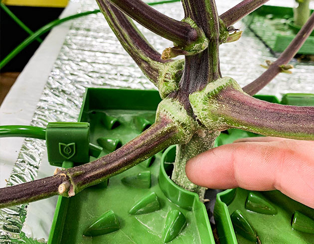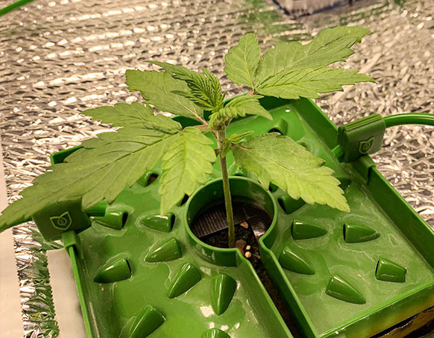 Две семечки Stardawg Auto были пророщены в кубиках Rapid Rooter и помещены в небольшие горшки с дырками. Проросли за 4 дня до того состояния, когда их можно было высаживать в горшки и отправлять в резервуар. Первые несколько дней они получали раствор с ppm 300. Саженцы очень быстро вытянулись и сформировали первые две пары листьев, после чего я начал использовать полноценный раствор, pH воды 5,8, ppm 1064: