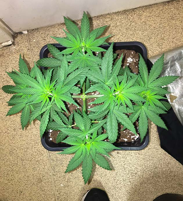 Кустик быстро отреагировал на переключение светового цикла и новый компот и не заставил долго ждать начала цветения (не люблю термин предцвет, начали появляться первые волоски – значит зацвели). Очень нравится форма растения, симметричные ветви и их длина. Я их не гнул и не растягивал, а получилась практически равномерная крона с открытой серединой, что очень хорошо для нижних ярусов. Кустик хорошо пьет, 3 литра просыхают за 2-3 дня. Компот на цвет без сильных изменений, снизил концентрацию «КалМага» до 0,5 мл/л. Подкормку и чистую воду чередую. Признаков дефицита нет. Также один раз обрабатывал Geisha Spray.