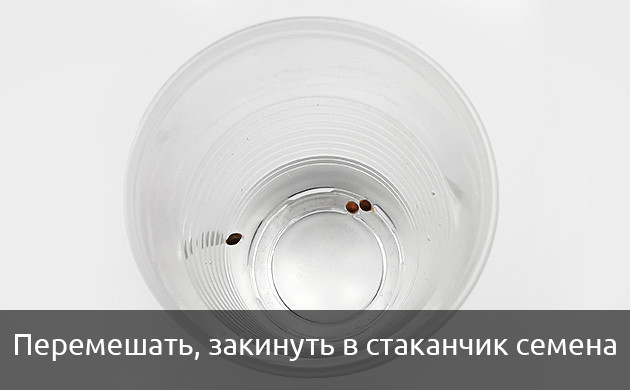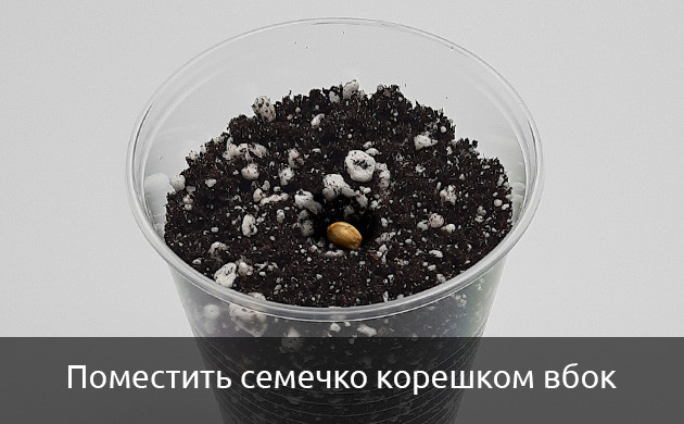 • аккуратно поместить в него семечко корешком вбок (лучше использовать пинцет),