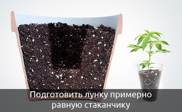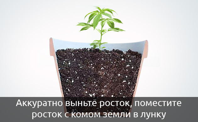• подготовьте лунку в земле, примерно равную по габаритам стаканчику с ростком,