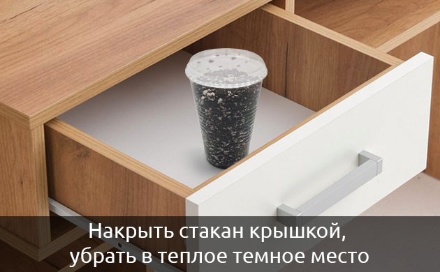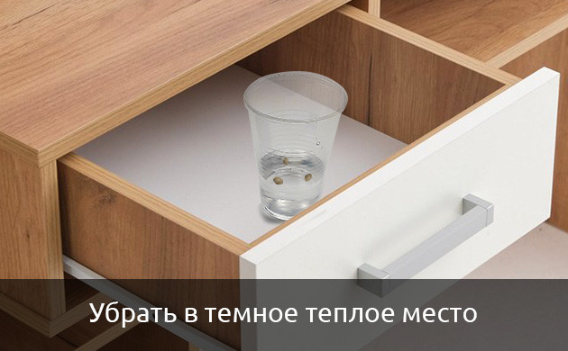 • уберите стакан в темное теплое место (шкаф, ящик стола)