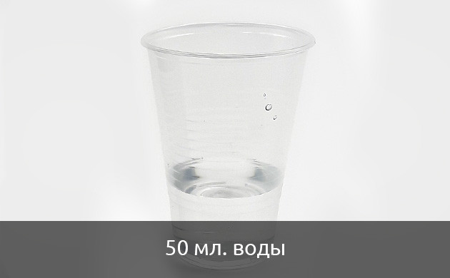 • налейте в стакан 50 мл воды (четверть пластикового стаканчика)