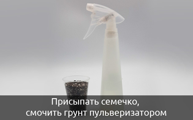 • тщательно смочить грунт вокруг семечки пульверизатором (брызгалкой),