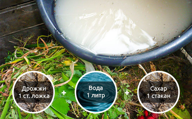 Обычные сухие пищевые дрожжи также могут помочь ускорить процесс. Просто приготовьте смесь из 1 литра воды, 1 столовой ложки сухих дрожжей и 1 стакана сахара. Все это хорошо размешайте до полного растворения ингредиентов и залейте раствор в заранее проделанное отверстие в центре компостной кучи.