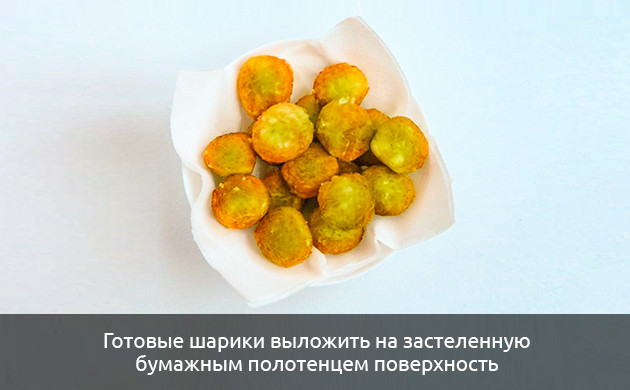 9. Готовые шарики лучше выкладывать сперва на застеленную бумажным полотенцем поверхность, чтобы убрать из них лишнее масло. Когда они немного остынут, можно наслаждаться хрустящей корочкой и ароматной сырной начинкой этой восхитительной закуски!