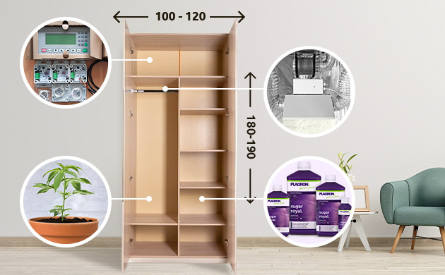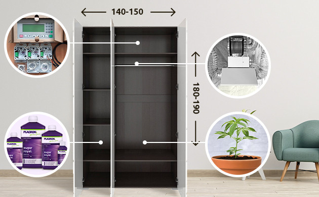 растил разных тентах и со временем понял что шкаф по моему мнению это самый топчик. свет не пропускает. внимания никакого вообще не привлекает. выглядит эстетично а еще можно просверлить доп отверстия для крепежа фильтров и прочего