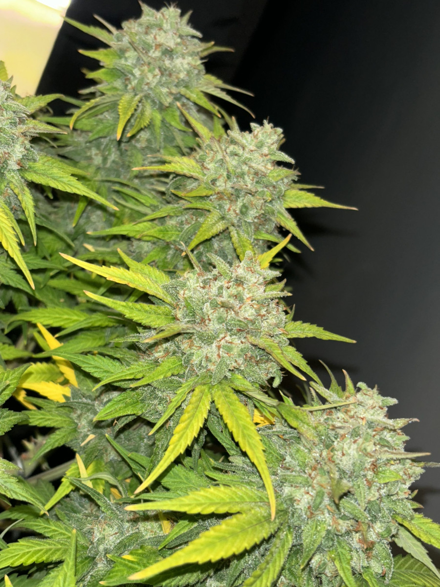 В целом все ок. Брал на первый гров. Были проблемы с ph на начале цветения. Возможно из за этого шишки получились не сильно плотные. Трихим много, смолы тоже. На последней неделе цветения аромат стоял будь здоров. Даже с фильтром пришлось понервничать. Без него крайне не рекомендую. LST прошло на ура. Отлично поддается тренировкам. Растет очень быстро. От каски до харва 65 дней. Итоговый вес 250г влажных шишек. После сушки думаю грамм 60-70 останется.