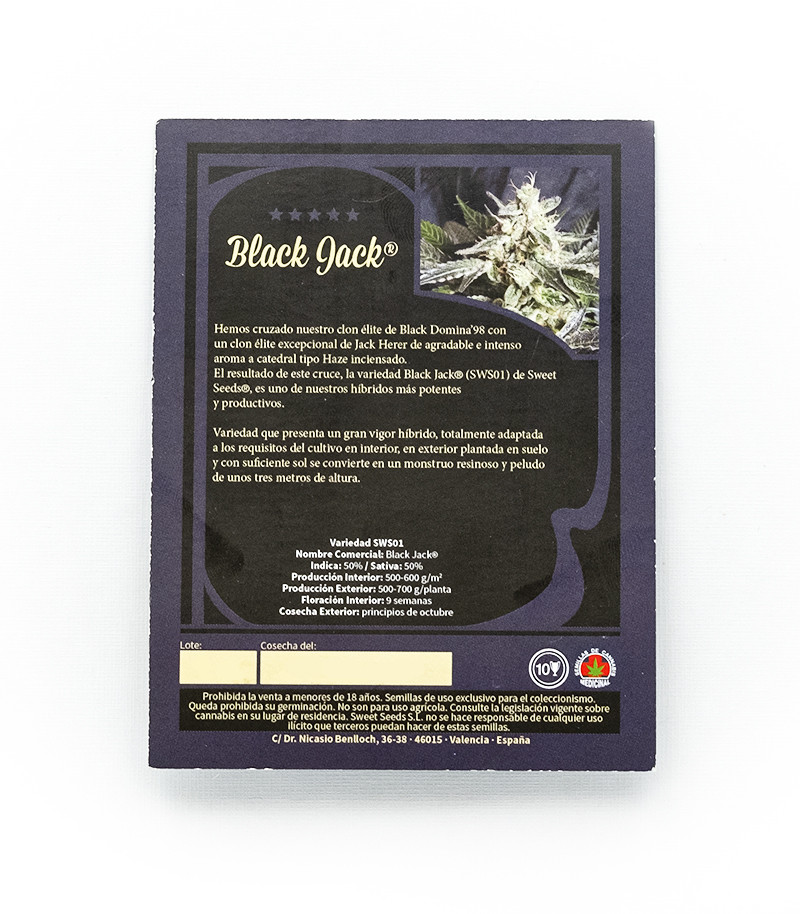 Сорт Black Jack очень мощный и урожайный, прекрасное дополнение коллекции Sweet Seeds. Штамм получен гибридизацией Black Domina и ароматного Jack Herer – растения с чистым запахом Haze.