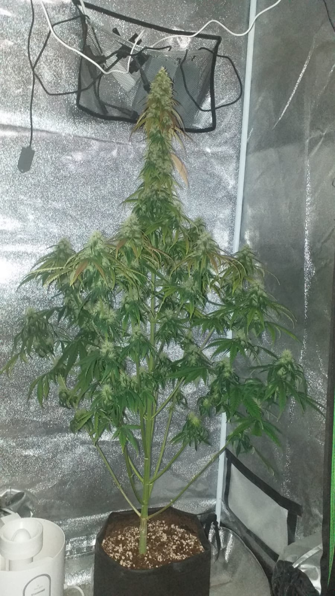 Долго искал медицинский сорт с максимальным содержанием КБД и минимальным содержанием ТГК, т.к. нет желания убиваться и Мариванна мне нужна в лечебных целях...Проращивал семена в попыхах в конце апреля. Посадил 2 семя когда они только скинули каску. Проросло корнем к раствору только одно (но это моя вина, т.к. оставил их без внимания на 12 дней)... Вторая разогналась не сразу. В начале 4 недели пошёл активный рост! В начале 6 недели растиха достигла 40см и зацвела на растворе для активной вегB!!! Раствор в гидропонике менял всего 2 раза отходя от рекомендованных концентраций к минимуму ) РН раствора на старте 5,3-5,4. Общий объём раствора 15 литров и этого достаточно, чтобы растиху не навещать две недели. За все время навещал ЕЁ три раза)) Сейчас готовлю раствор под цвет. На веге три LED-лампы без мерцания Gauss 6500K, сейчас буду добавлять лампы 2700К. Удобрения "GHE" с стимуляторами и всеми ништячками)) НО ! Двум растихам в боксе 60х60 было бы оооочень тесно! Это первая растишка, которую начал растить на гидропонике. За всё время (58 дней) навестил её всего 4 раза для смены питательного раствора. Пренебрёг напрочь всем уходом, а ей всё пофиг! Емкость с раствором около 20 литров и этого хватает для того, чтобы растиха могла долго (более 2 недель) находиться без участия гровера. По итогу растёт одна большая шишка))) Пару недель ещё подожду и дополню отзыв...