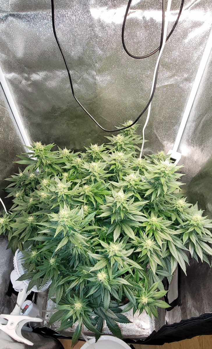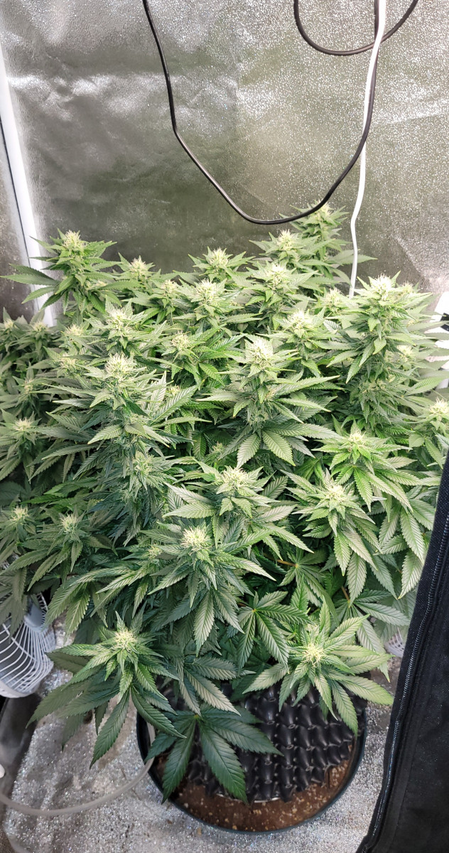 Сильный сорт растет хорошо в ауте СПб но долго в нашем климате Питера,если бы лето говно было бы то навряд ли харвеста дождался бы а так три недели как цветет стебель фиолетовый и ветки,листва убивают новичков!