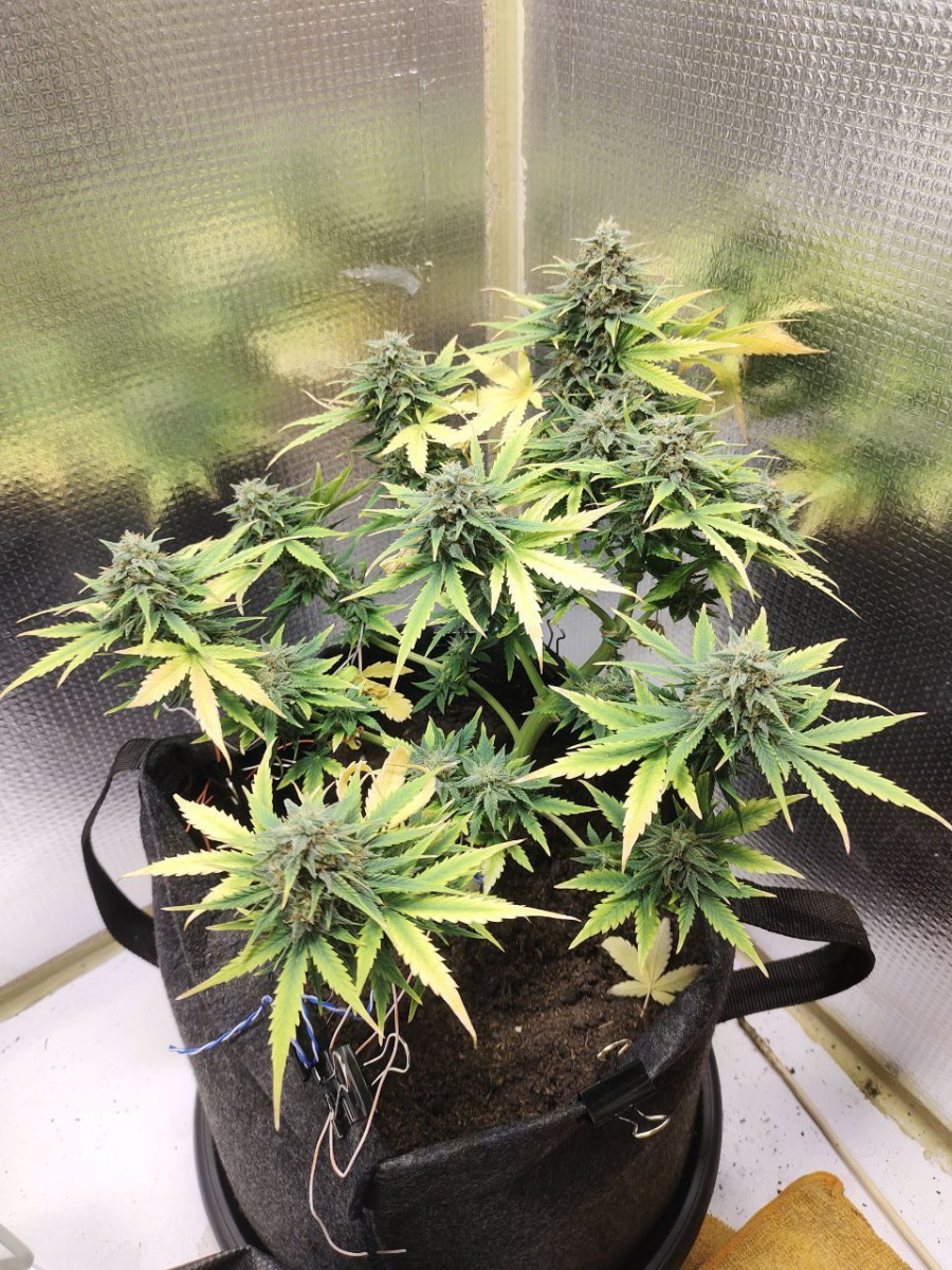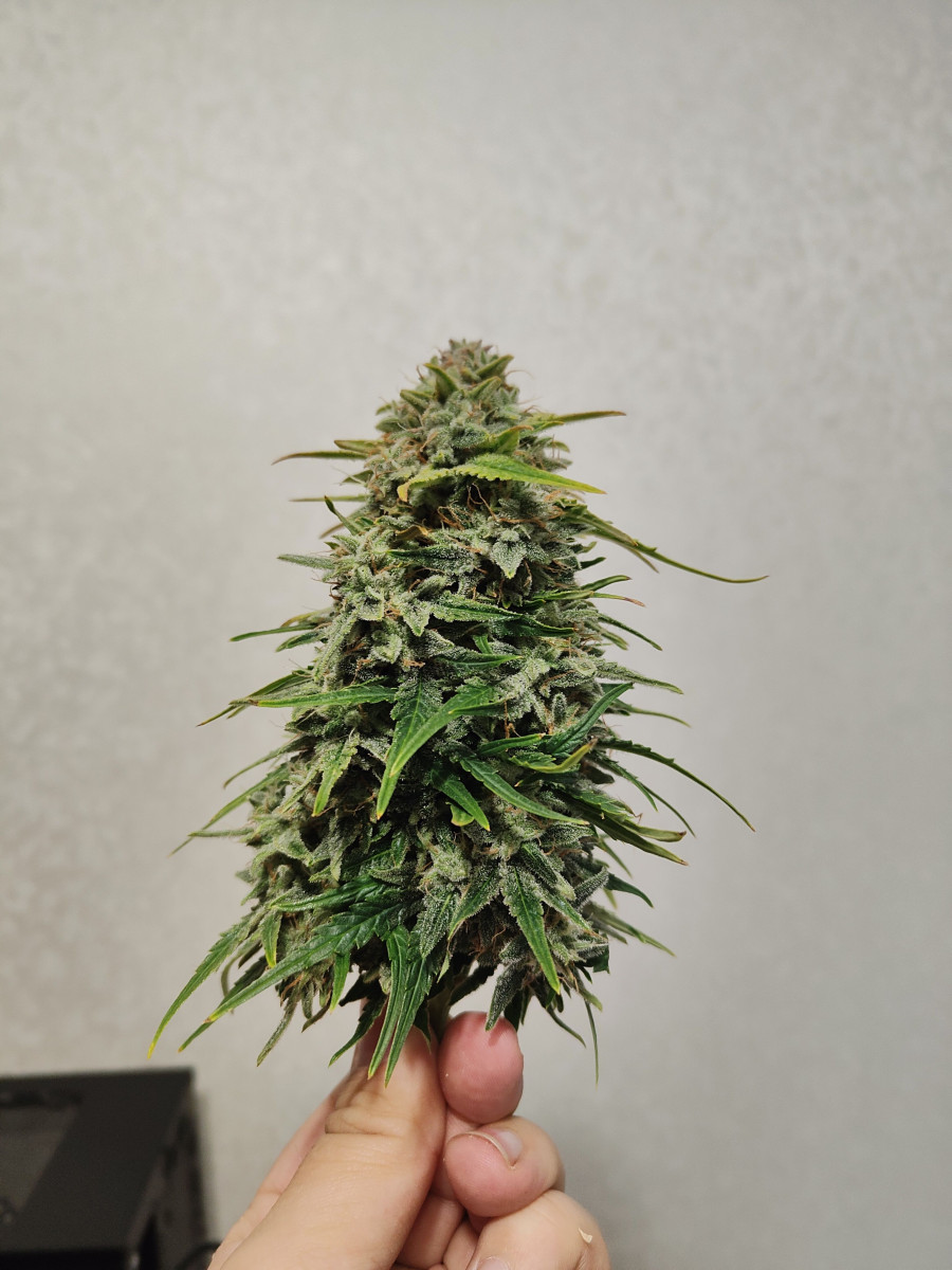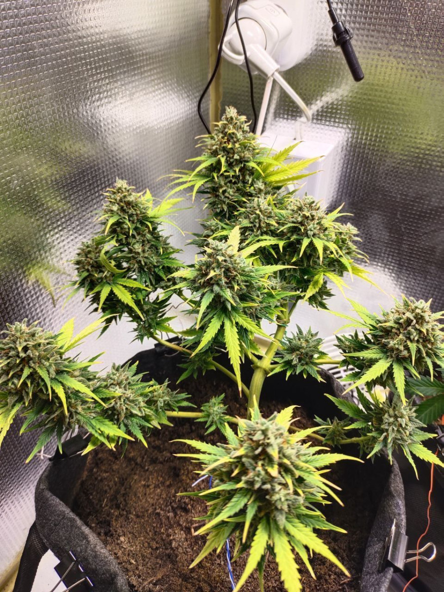 Очень шустрый автоцвет, тренировок не бои совсем, делал Фим подрезку и супер кропинг, куст тяготы и невзгоды почти не замечает, уверенный рост на 60 дней уже почти все трихомы мутные и очень много янтаря, снял пробу и был очень приятно удивлен автик и такой приход…