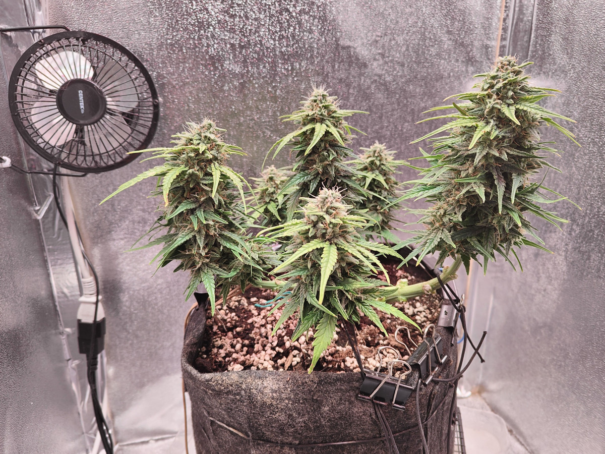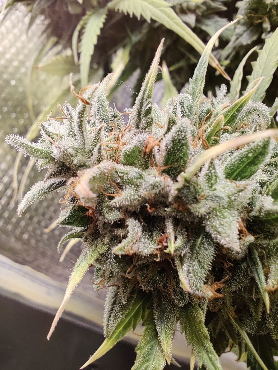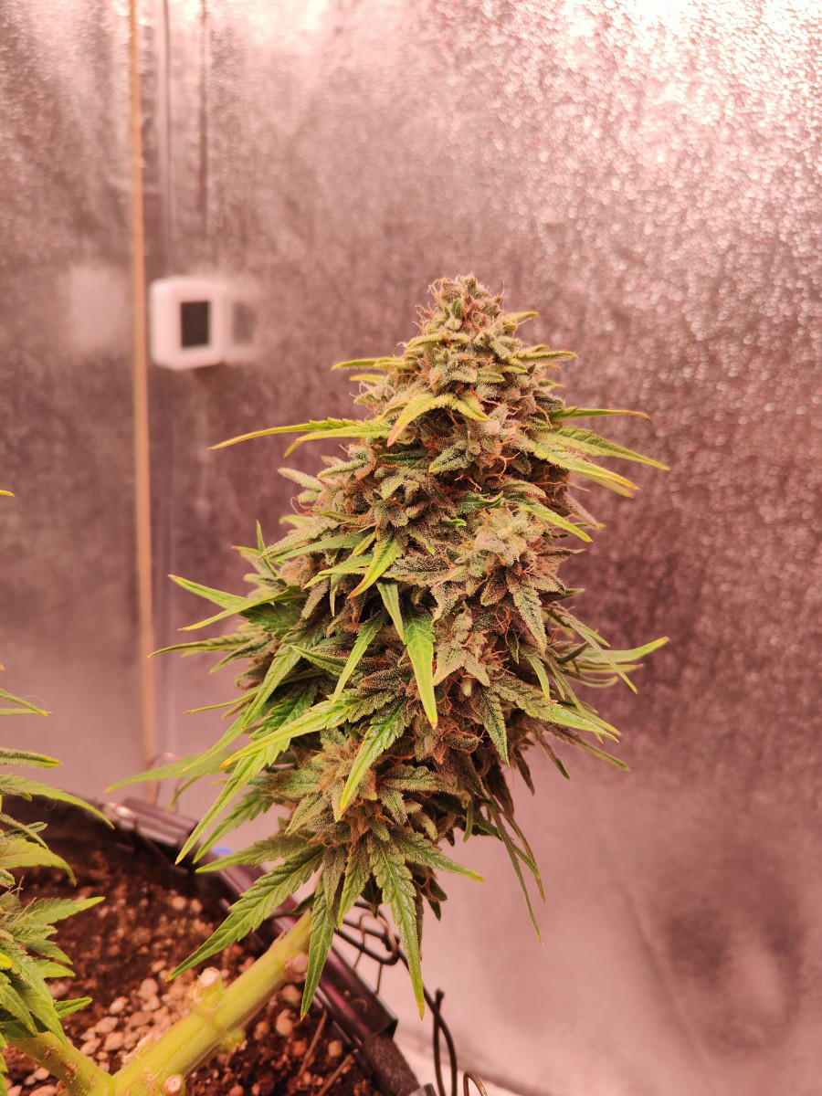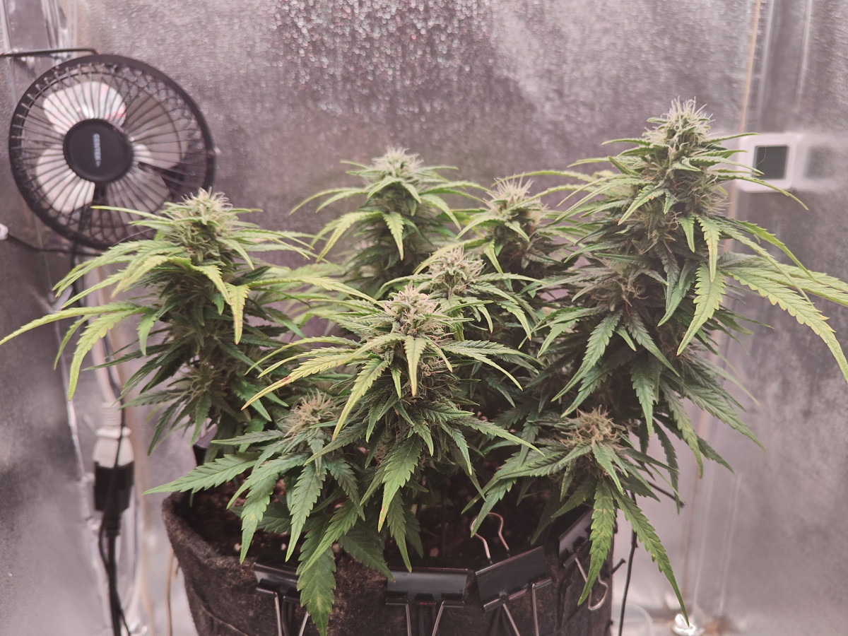 Очень шустрый автоцвет, тренировок не бои совсем, делал Фим подрезку и супер кропинг, куст тяготы и невзгоды почти не замечает, уверенный рост на 60 дней уже почти все трихомы мутные и очень много янтаря, снял пробу и был очень приятно удивлен автик и такой приход…