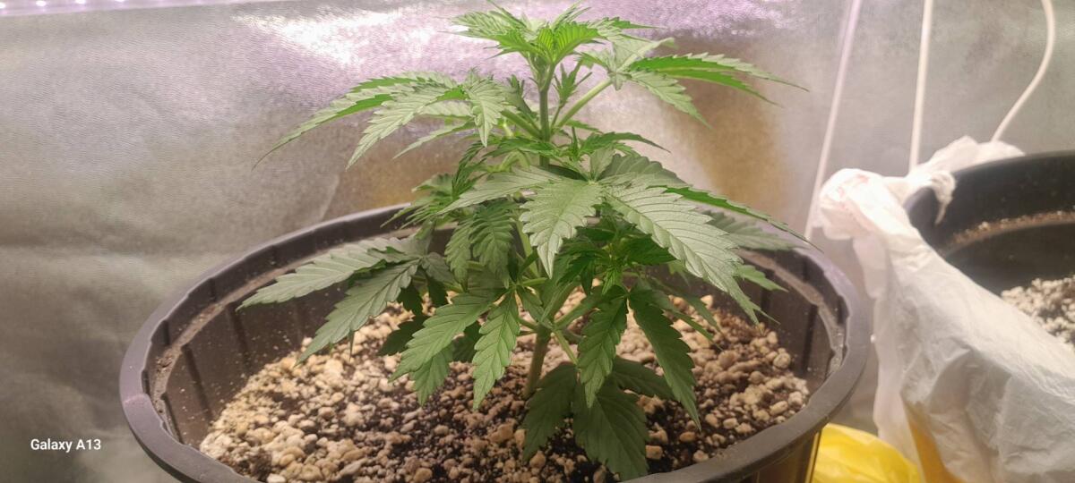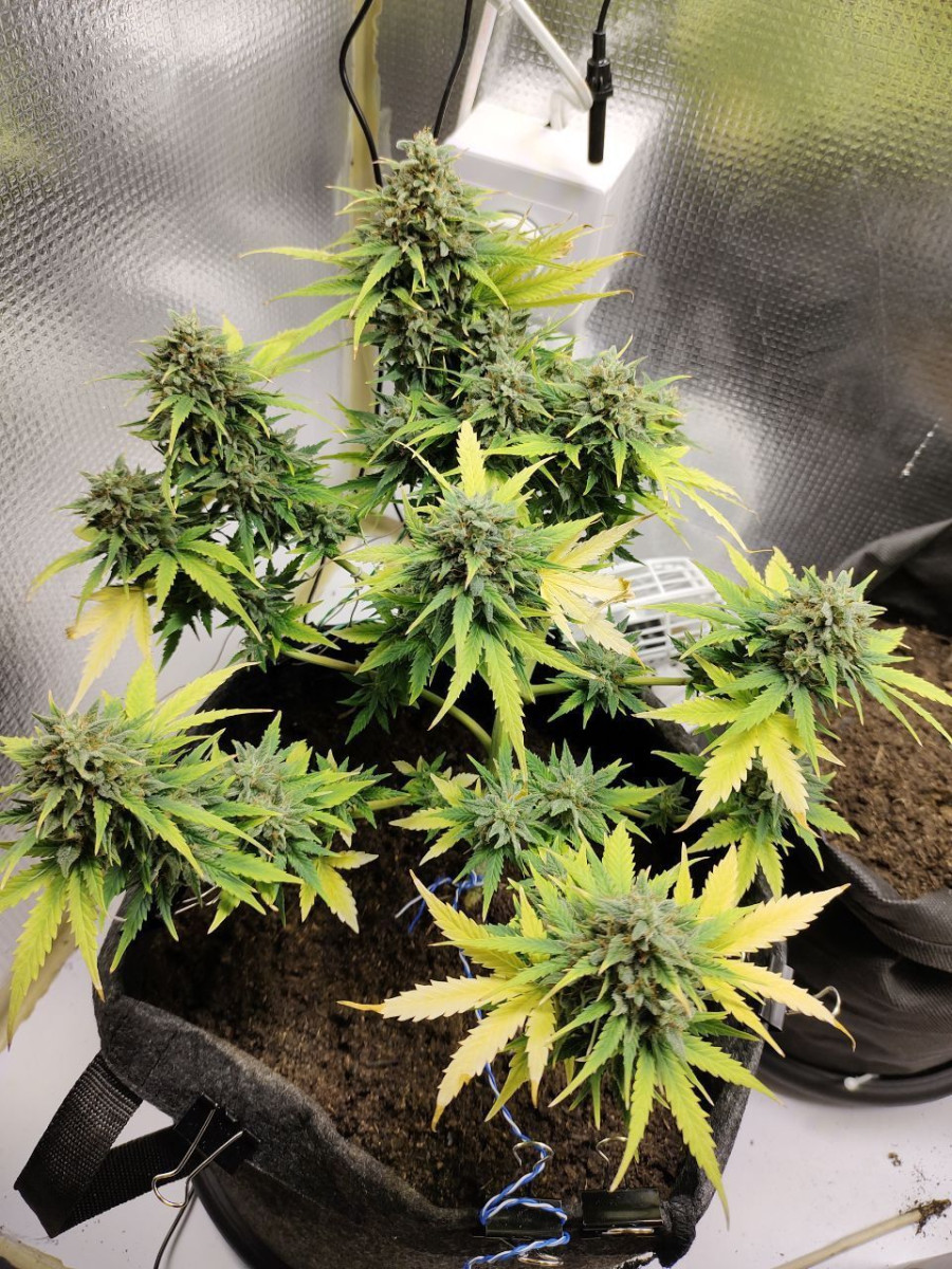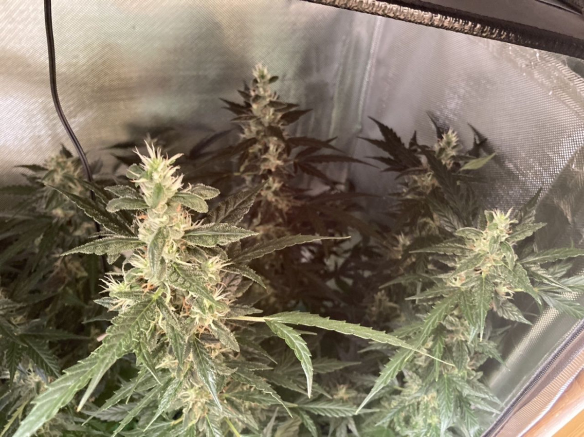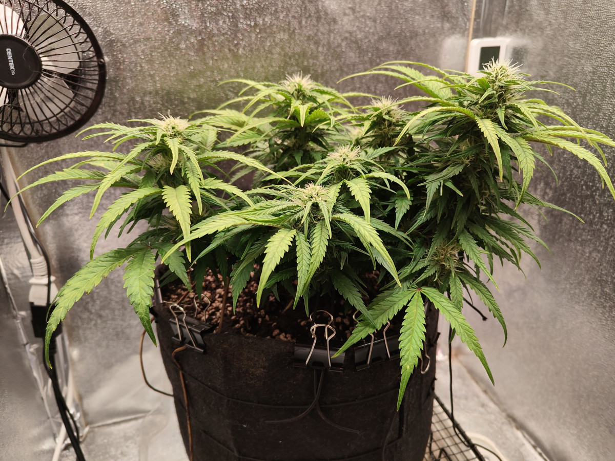 У одной семки при посадке был поврежден корешок, не сильно. Но растишечка все равно взошла. Хотя и испытывала определенный стресс и у нее желтела листва по краям. Но на это повлияло и перекармливание. Вторая же выглядела прекрасно. Однако к четвертой неделе все выровнялось. Тогда же начался и предцвет. В 8 недель оба растения выглядели хорошо и уже заметно разрослись, прибавив в темпах роста после начала цветения. Шишки активно набухать начали примерно с 9 недель от каски, ну а всего гров занял чуть больше 12 недель.
