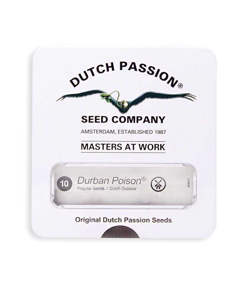 Селекционеры одного из самых старых сидбанков мира голландского Dutch Passion получили сорт конопли Durban Poison reg, перекрещивая гены южноафриканской сативы. Начиная с 70-х годов прошлого века, бридеры улучшали генетику новых поколений. Это привело к появлению Durban Poison reg – выносливому, устойчивому к сложным и холодным северным условиям сорту, способному расти в ауте даже в климате Шотландии и Великобритании.