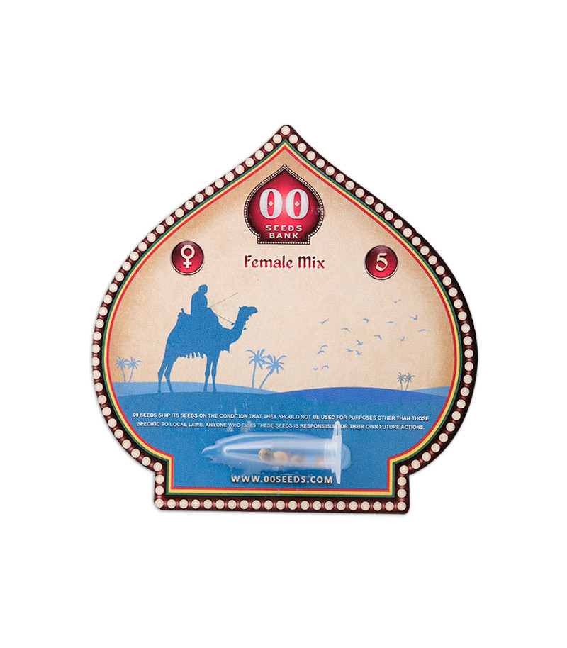 В семена конопли Female Mix испанский сидбанк 00 Seeds включил три фотопериодичных сорта, которые станут для гроверов настоящим сюрпризом. Среди семян замиксованы секретные новинки, которые еще даже не появились на рынке. Гроверы смогут найти новый любимый вкус и аромат.