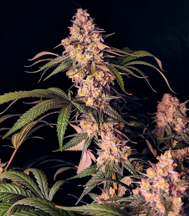 Кусты сорта конопли Fullgas! – это настоящая услада для глаз эстета. Пробиваясь сквозь землю, крепкие побеги активно начинают увеличиваться в размерах и формировать обширную крону. Кусты отличаются сильным ветвлением. Как и стебель, боковые побеги крепкие, так что удержать вес тугих и смолистых бутонов им не составляет особого труда. Соцветия, плотно прилегающие к стеблям, имеют круглую форму и небольшие размеры. На холодную погоду Fullgas реагирует потемнением листвы и хмурыми фиолетовыми оттенками шишек.