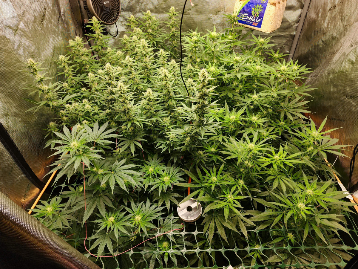Я очень доволен результатами, мне повезло: у меня стабильная генетика и зеленый куст. Я считаю, что сативный фенотип наконец-то перестал растягиваться и сосредоточен исключительно на развитии почек. После некоторой обрезки я заметил, что запах у нее довольно отчетливый и сильно напоминает цитрусовые, смешанные с бензином. Ее бутоны представляют собой маленькие пирамидки, и мы надеемся, что они набухнут в ближайшие недели.