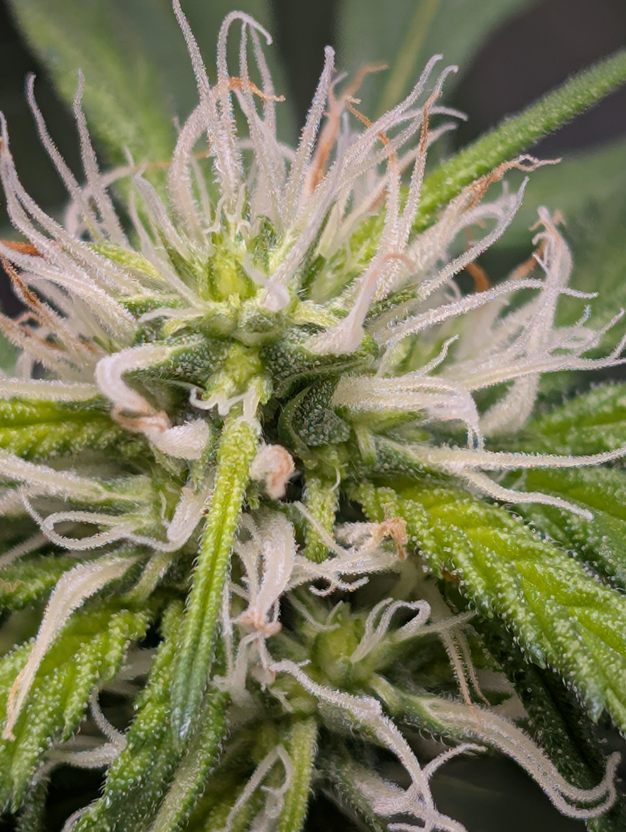Поднимаю уже второй куст. При моих на тот момент очень скромных ресурсах, под не самым лучшим самодельным светом, растение держалось молодцом и выдавало максимум, что могло. Долго переходило на цвет, одуваны не показывались около двух недель после перевода на 12/12. Сейчас же в гораздо более подходящих условиях развивается буквально на глазах, активно дает новые узлы и колы. Очень любит свет, и за хорошее с ней обращение отплачивает сполна. Дефицитов как будто вообще никаких не было, только ближе к сбору урожая концы желтеть начали чутка.