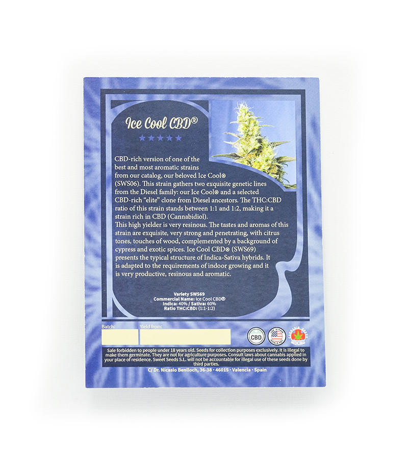 Семена сорта NYC Diesel CBD (Ice Cool CBD) fem (Sweet Seeds) Испания, Феминизированные, Фотопериодные, КБД-9 - 13