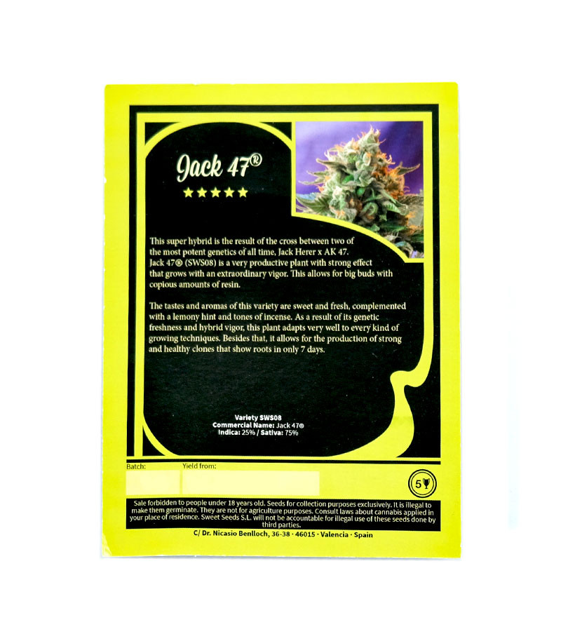 Семена сорта Jack 47 fem (Sweet Seeds) Испания, Феминизированные, Фотопериодные, ТГК-18 - 24