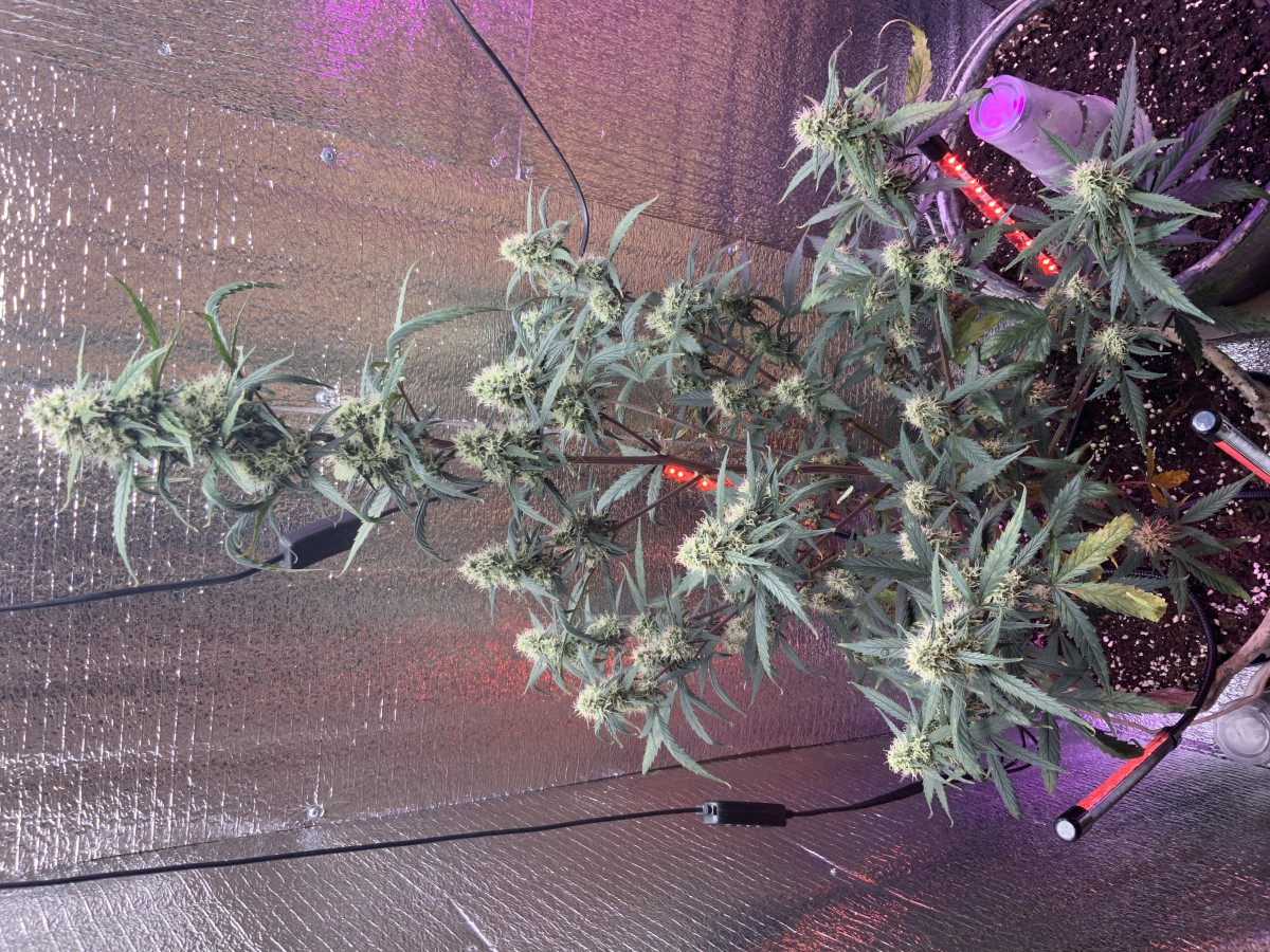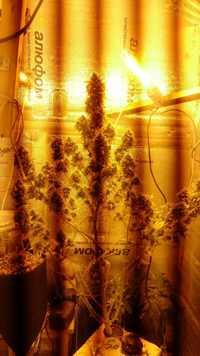 2 кустика выросли карликами где-то 30-40 см... урожай для такого роста неплохой (где-то пол банки 0.5л шишек с 2х растишек)... обьем горшков 12.5 л. ... свет - 100вт+ (9 лампочек светодиодных... osram, philips, chamelion фито)... эффект не понятный между хаем и стоуном (как только трихомы на верхней шишке начали желтеть срезал весь куст... мб стоило подождать довести до янтаря)... сразу после сушки эффект слабый... после пролечки эффект явно сильнее (ферментацию отдельно не проводил)