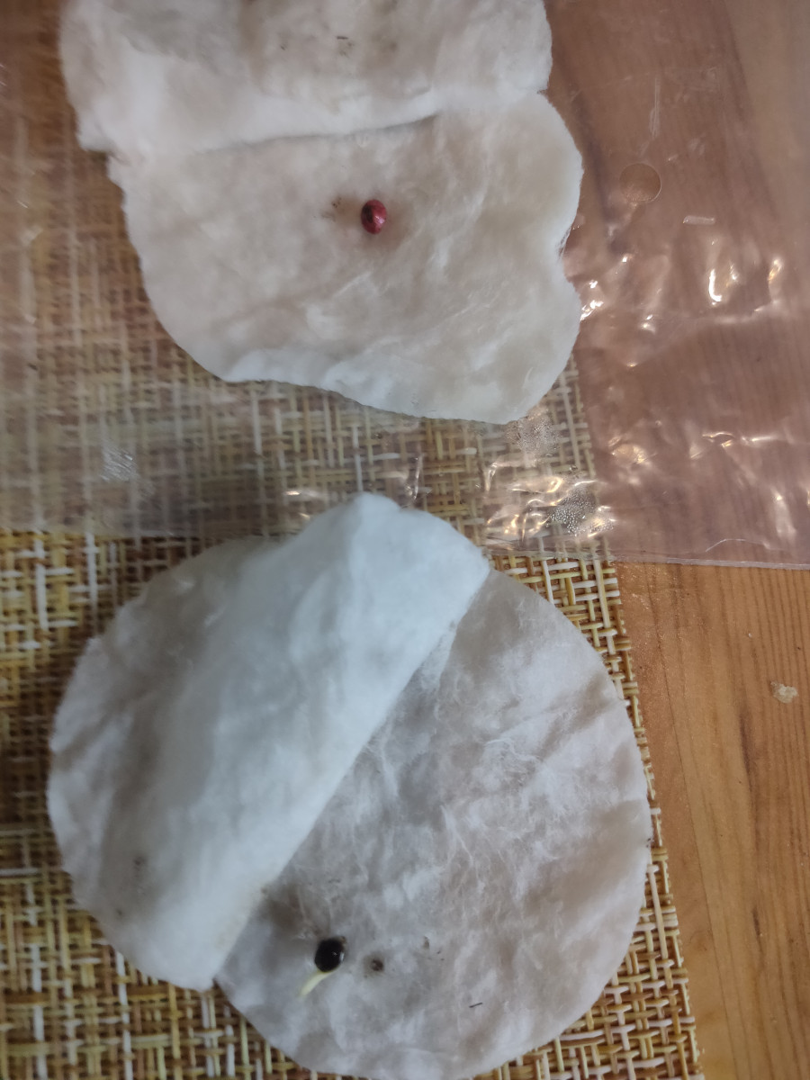 Всем доброго! закинул 5 дней назад карамельку бонусную она не хочет и я думаю что не захочет но была закинута в грунт после диска и было решено закинуть Джека и вот прошло 2 дня как закинул семку в диск , смотрел на кануне вечером показался маленький корешок ,решил оставить до утра и и он уже показался нормально, на фото верхняя это карамелька ,а нижняя Джек первый опыт