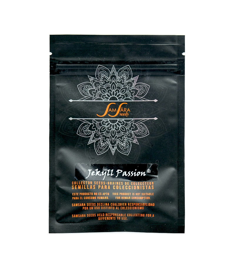 Сорт конопли Jekyll passion от Samsara Seeds – выносливый сатива/индика гибрид. Не боится плесени и вредителей. В индоре дает урожай 500 г/м2, в ауте – 900 г/куст, подходят для теплиц. Необходимо максимально сократить вегу. Вкус фруктово-цветочный с хешем, метолом и ладаном. Эффект эйфорический.
