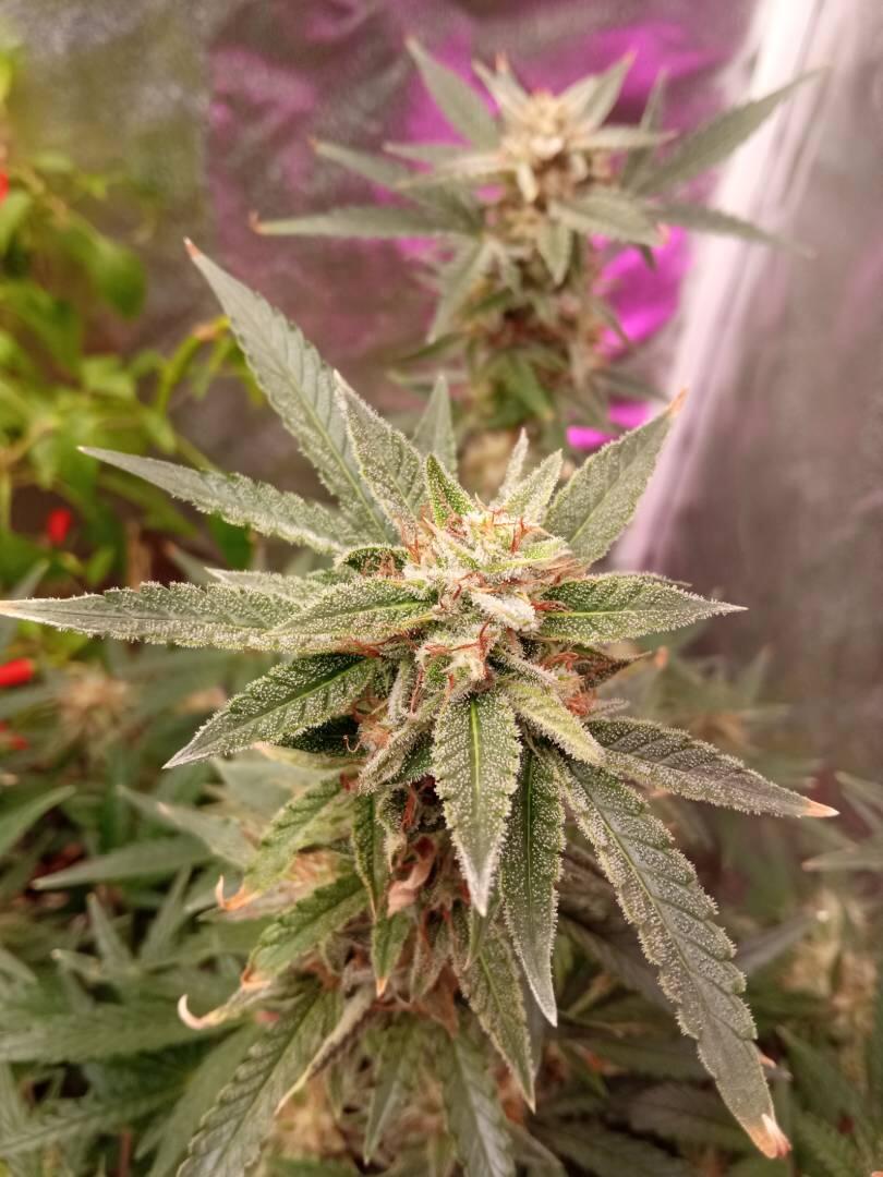 изначально я планировала пробовать куст, варварский поступок, знаю, но мне хотелось чувствовать изменения на каждом этапе, понять как должно быть в идеале, в один момент уже чувствовала себя сумасшедшим ученым😅 кустик случайно был сломан во время тренировки, резинка оторвала стебель во время растяжки, Растишка выдержала потерю, затем на этапе цвета появились желтые пятна, как оказалось нехватка фосфора из-за неисправного прибора ph, не знаю с какого этапа сломался прибор и ph был далеко ниже 5,5, собственно поэтому шишки и получились карликовыми, это лишь мои догадки...
