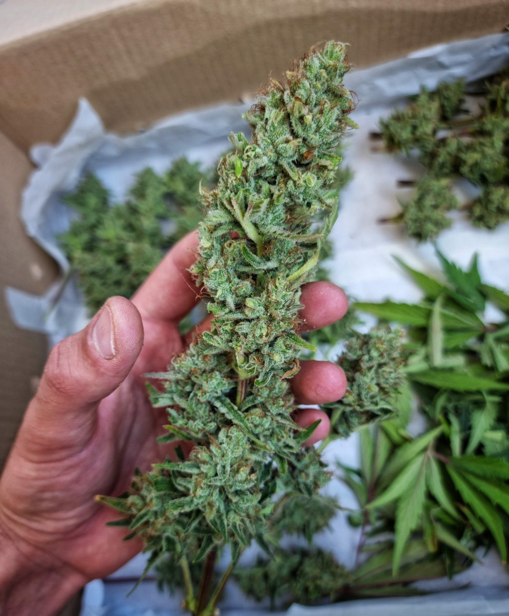 Идеальная всхожесть, очень хороший рост и великолепное цветение. Урожай собран всего через 11,5 недель после посадки семечек. Шишки полностью покрыты смолой.